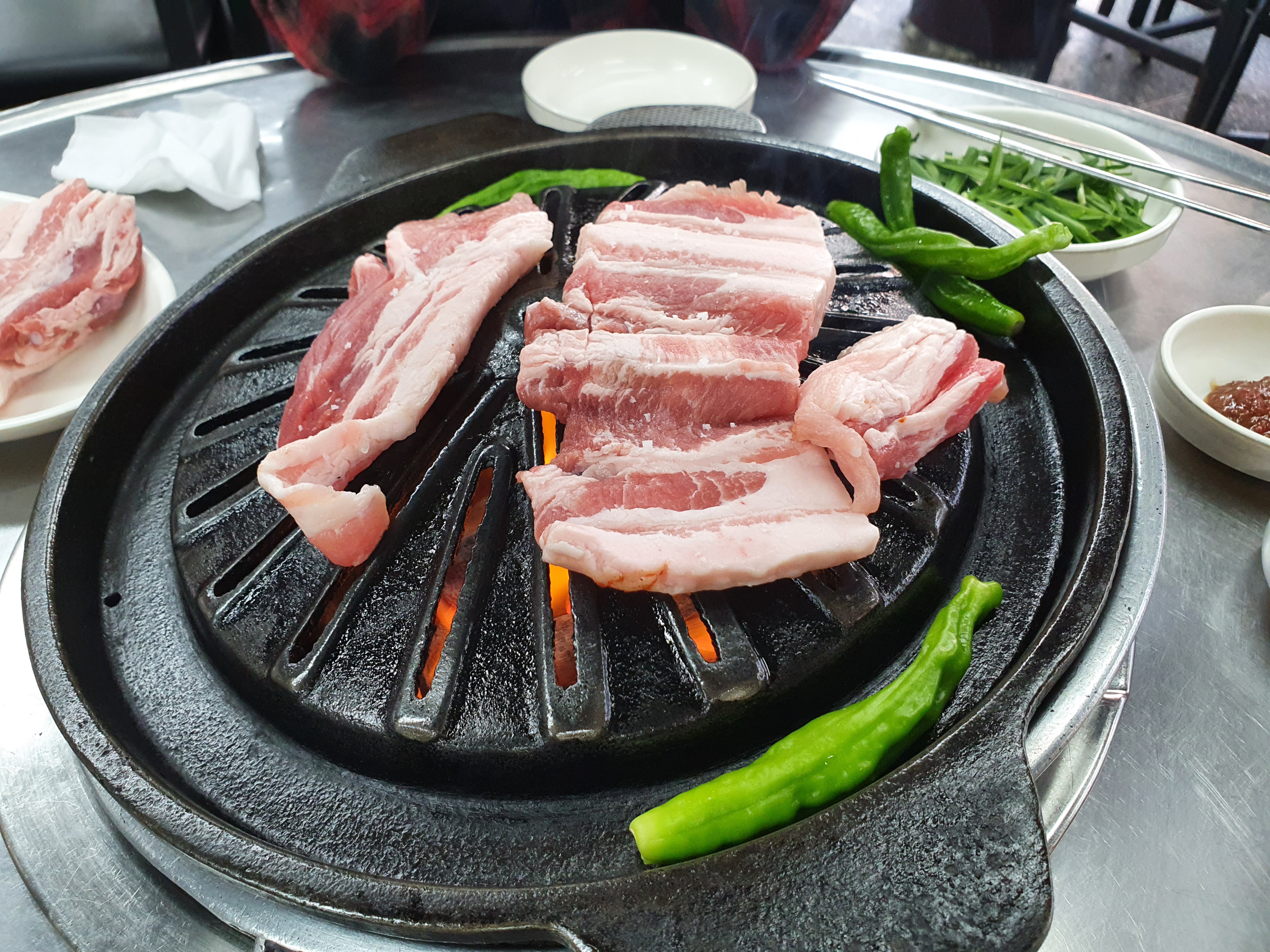 고기를 구울 때 꽈리고추를 같이 굽는데