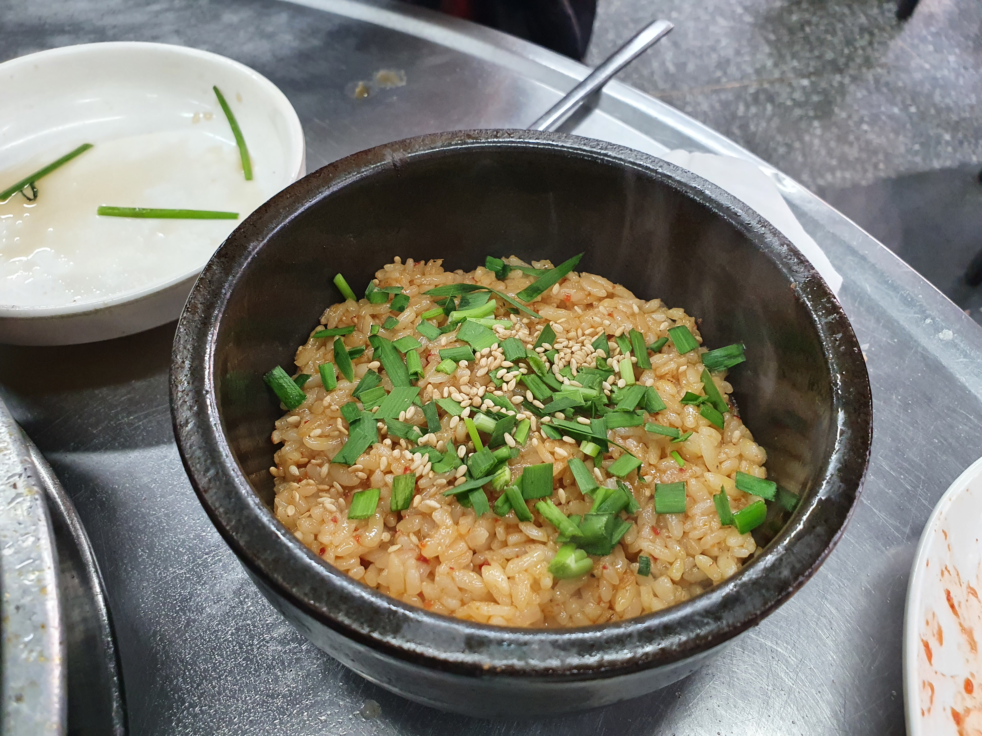젓갈 볶음밥과 된장찌개가 나왔습니다.