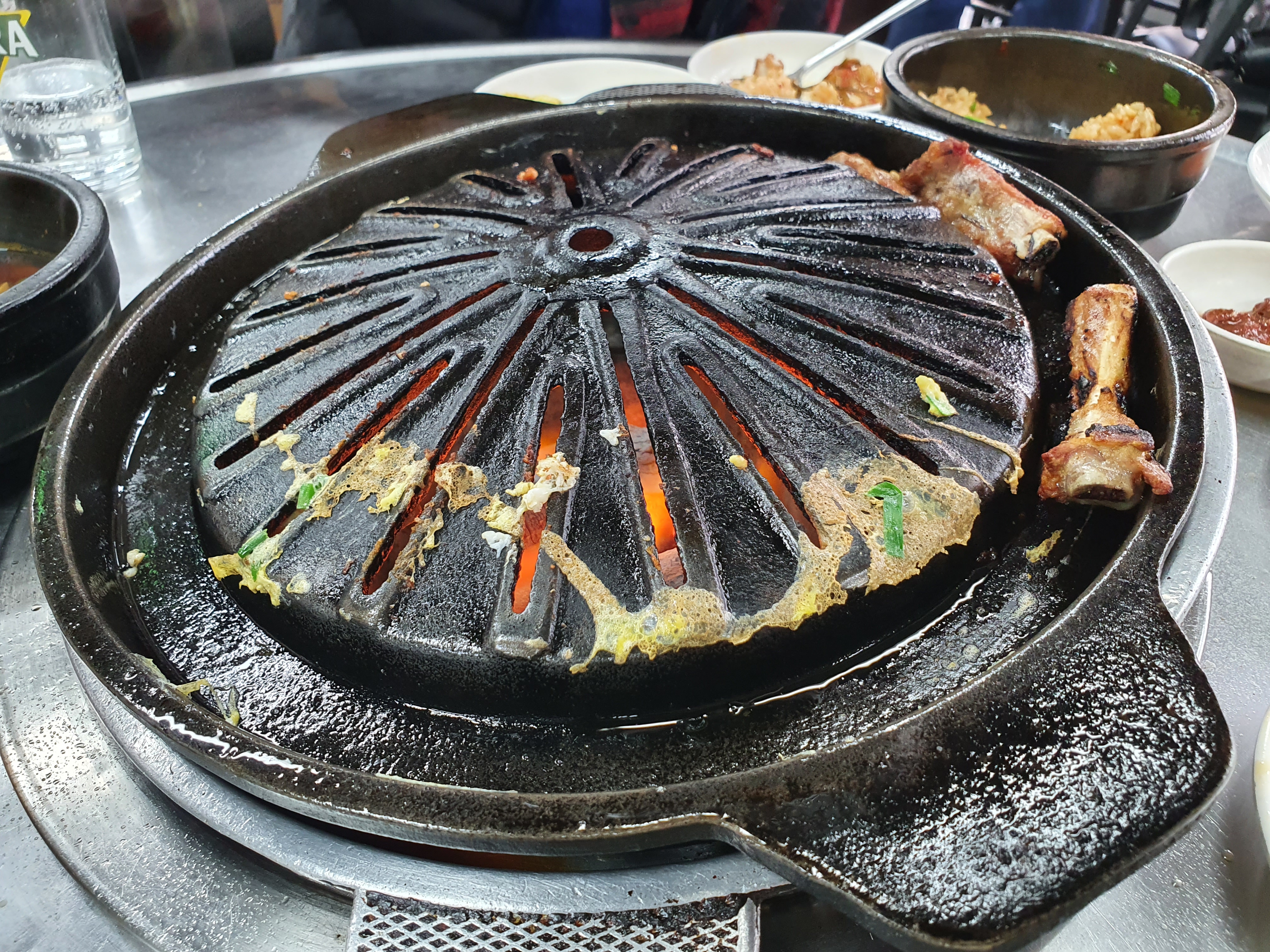 고기를 다 먹으면 구이판 테두리에 달걀을 풀어서 익혀 주시는데..