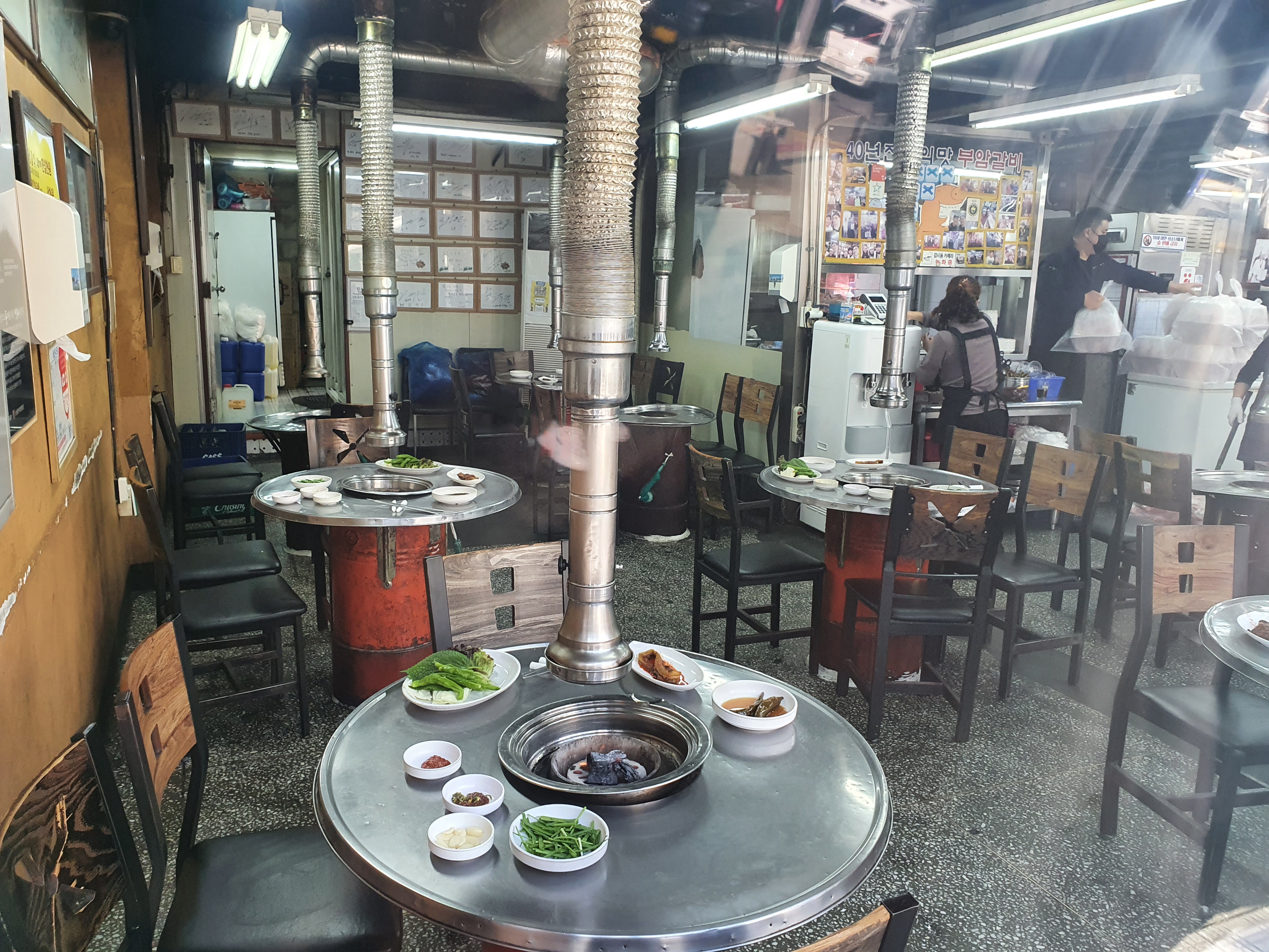 오픈 전 각 테이블 마다 미리 준비를 하고 있네요.