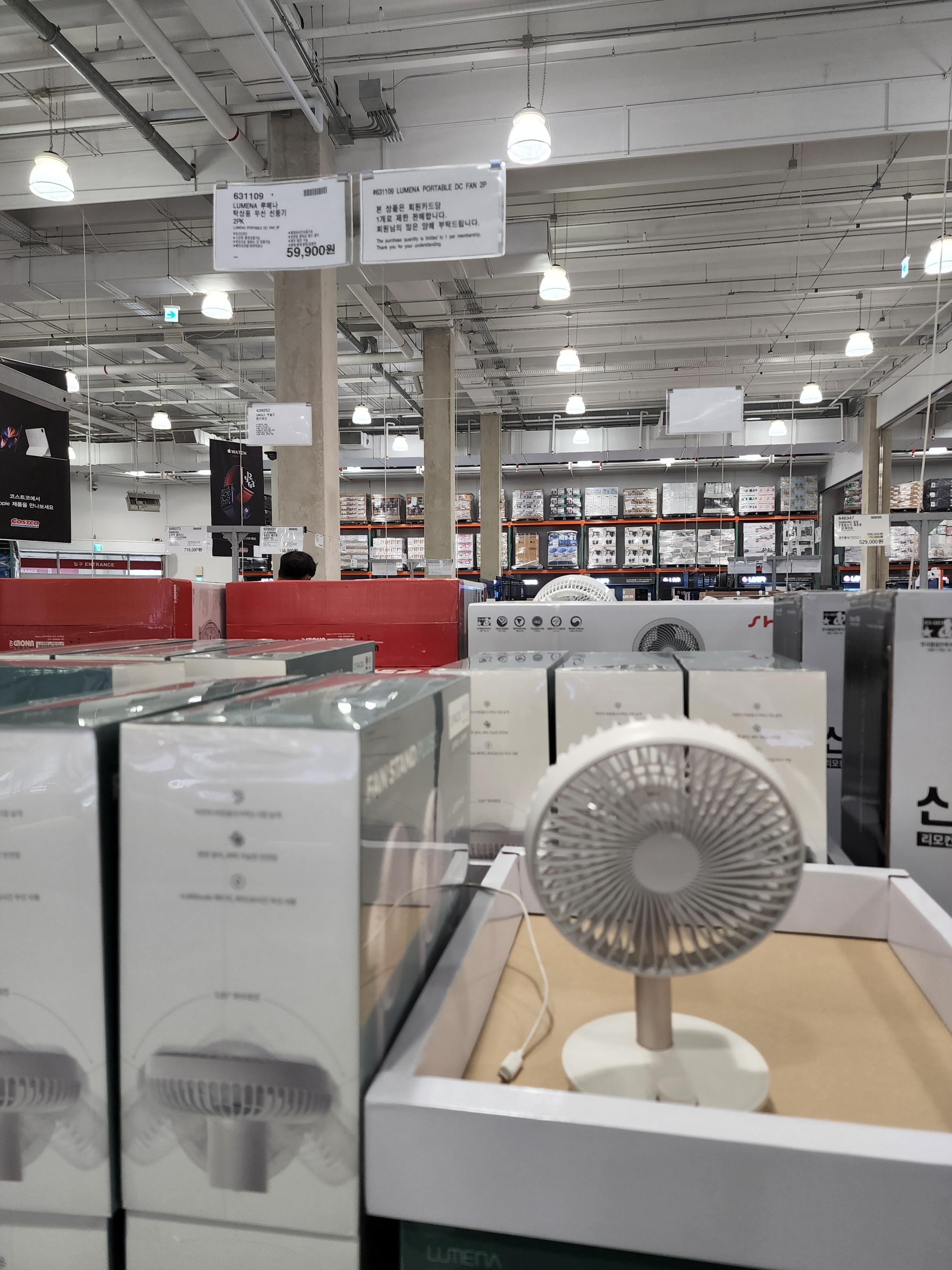 입구에 전시된 휴대용 선풍기를 보니 계절을 실감하게 됩니다..