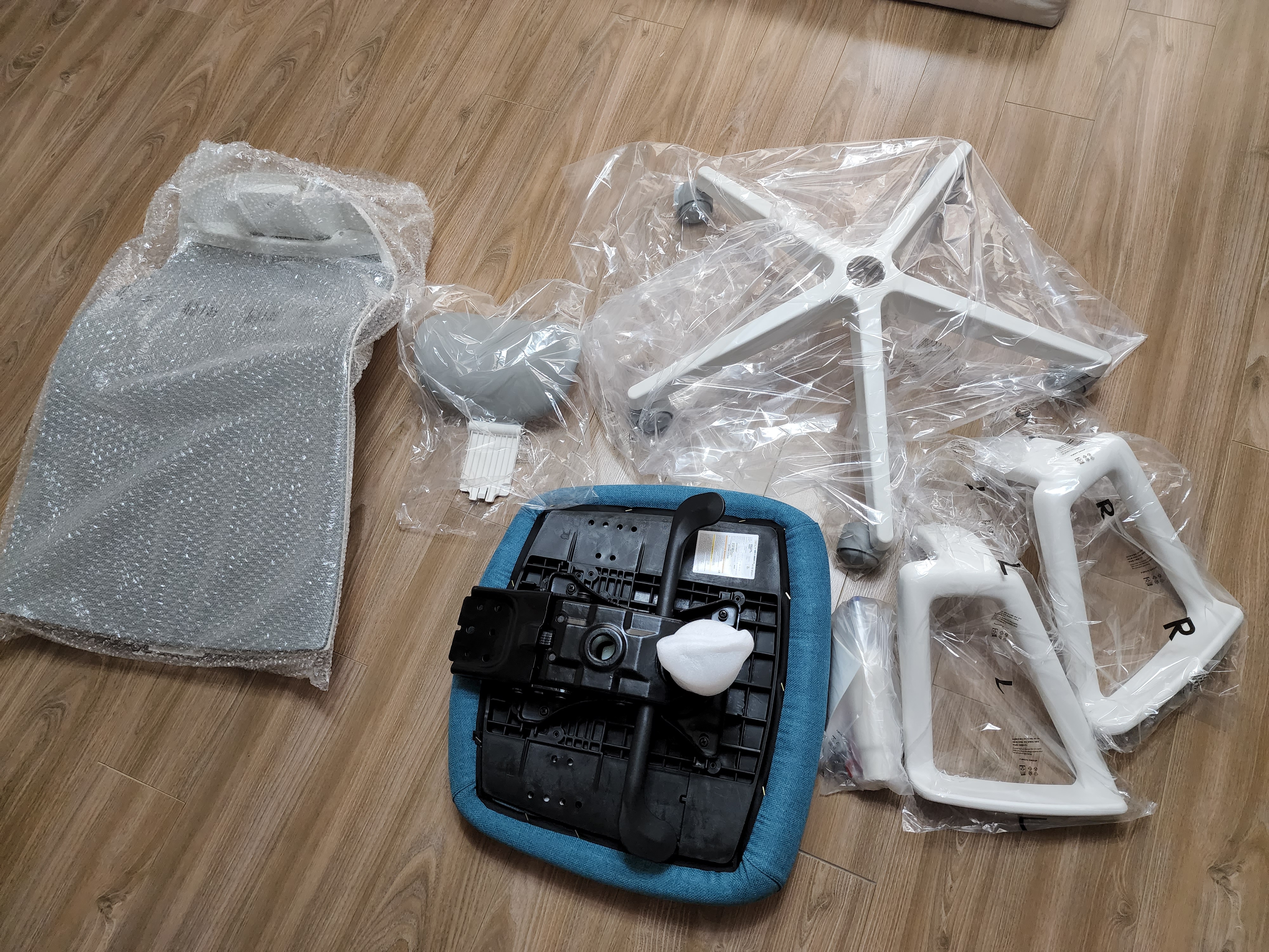 조립하기 전 부품을 하나하나 꺼내다 보니 의자 대부분의 무계가 좌판 및 바퀴 프레임에 있는 것 같습니다.